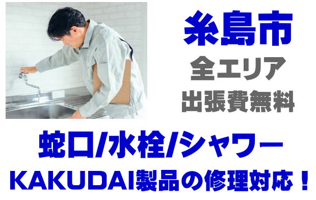 糸島市で水栓メーカーKAKUDAIの修理業者をお探しなら当社までお気軽にお問い合わせください。蛇口の水漏れ、シャワーの故障などカクダイ製に関するトラブルなら何でもご相談ください。