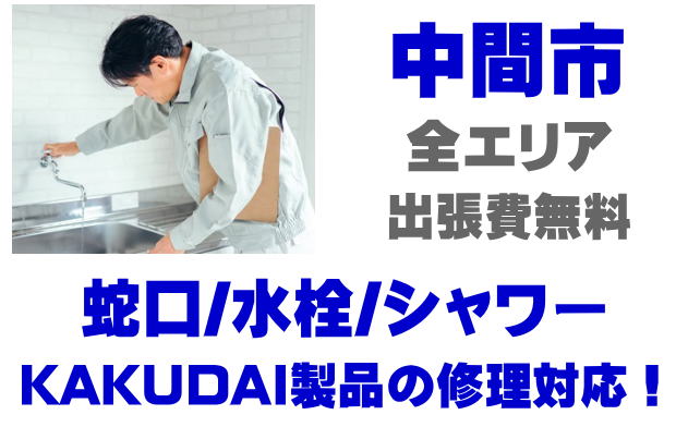 中間市で水栓メーカーKAKUDAIの修理業者をお探しなら当社までお気軽にお問い合わせください。蛇口の水漏れ、シャワーの故障などカクダイ製に関するトラブルなら何でもご相談ください。