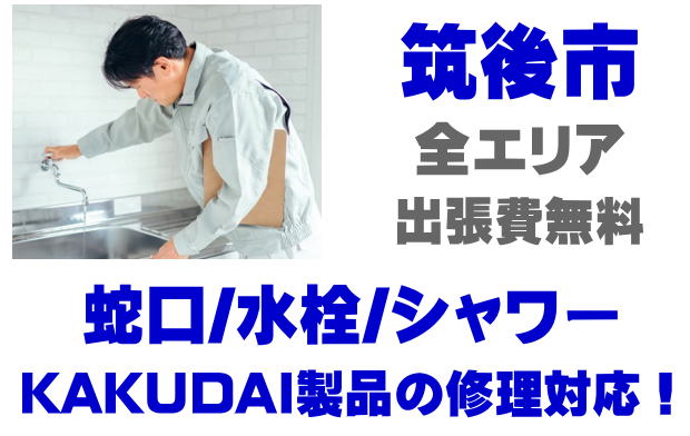 筑後市で水栓メーカーKAKUDAIの修理業者をお探しなら当社までお気軽にお問い合わせください。蛇口の水漏れ、シャワーの故障などカクダイ製に関するトラブルなら何でもご相談ください。