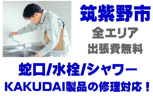 筑紫野市で水栓メーカーKAKUDAIの修理業者をお探しなら当社までお気軽にお問い合わせください。蛇口の水漏れ、シャワーの故障などカクダイ製に関するトラブルなら何でもご相談ください。