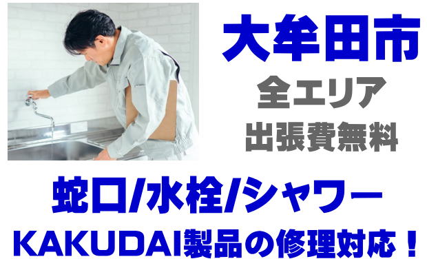 大牟田市で水栓メーカーKAKUDAIの修理業者をお探しなら当社までお気軽にお問い合わせください。蛇口の水漏れ、シャワーの故障などカクダイ製に関するトラブルなら何でもご相談ください。