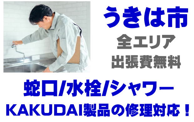 うきは市で水栓メーカーKAKUDAIの修理業者をお探しなら当社までお気軽にお問い合わせください。蛇口の水漏れ、シャワーの故障などカクダイ製に関するトラブルなら何でもご相談ください。